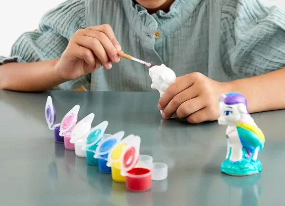 Avec ce coffret créatif complet, moule, démoule et peins ces 5 licornes adorables avec les 7 peintures gouache nacrées.