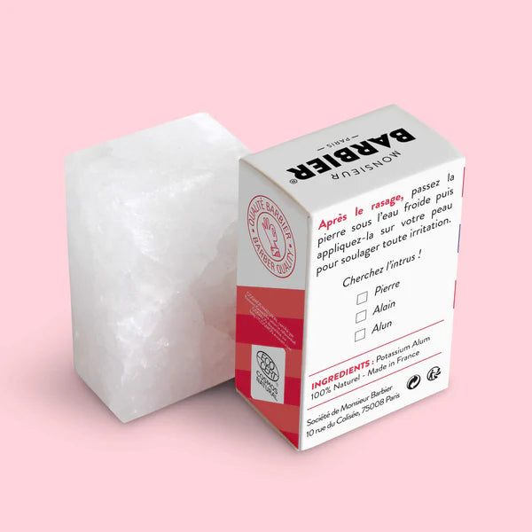 Utilisée depuis toujours par les Maîtres Barbiers pour ses vertus apaisantes et cicatrisantes, la pierre d'alun naturelle est un indispensable du rasage traditionnel. Idéale pour calmer le feu du rasoir, ou encore pour faciliter le rasage électrique, ses bienfaits sur la peau n'ont pas leur pareil. Essayez-la, vous nous en direz des nouvelles !